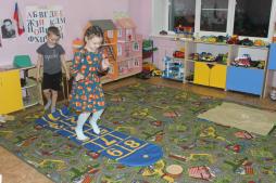Территория детского сада асфальтирована. В помещении детского сада первая и последняя ступени выделены контрастным цветом. В групповых помещениях обеспечен свободный доступ к играм и игрушкам.
